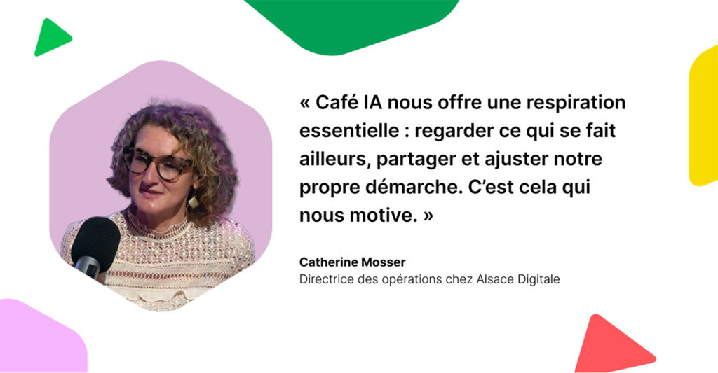 Directrice des opérations chez Alsace Digitale, une association qui vise à faciliter l’émergence de projets innovants dans le domaine de l’économie numérique en Alsace, Catherine Mosser a piloté le lancement de Cafés IA réguliers portés par l’organisation et un de ses partenaires, Agora Calycé, dans la région. Plus récemment Alsace Digitale a co-organisé le Méga Café IA, le plus festif de France en octobre 2025 avec l’équipe Café IA. Nous la rencontrons pour comprendre leur mise en place, leurs méthodes et leurs motivations.