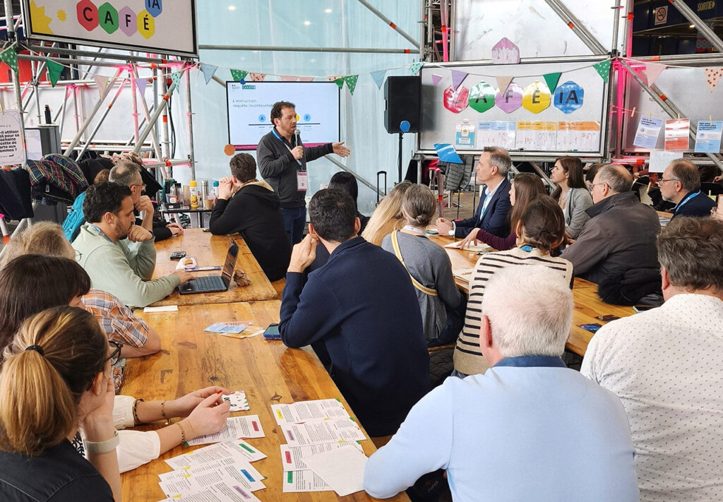 « Les Cafés IA se construisent toujours en fonction du public visé. Il peut s’agir d’élus, du grand public, d’enseignants, de personnels éducatifs ou encore de professionnels médico-sociaux, notamment lorsque nous abordons des sujets liés à la relation humain-machine, à la santé mentale ou à la place de l’IA dans les pratiques adolescentes. Certains Cafés IA que nous organisons sont généraux et interrogent le rôle de l’IA dans la société ; d’autres sont thématiques, par exemple sur le lien entre IA et environnement, sur les questions d’évaluation ou encore sur les usages personnels des élèves. Pour ce dernier type de séance, nous avons par exemple utilisé des vidéos consacrées aux IA génératives, ainsi que des temps de discussion visant à éclairer les mécanismes en jeu, en demandant, par exemple, comment fonctionnent les algorithmes de recommandation de YouTube. Pour les enseignants, nous avons travaillé avec Didier Roy, chercheur à l’INRIA, à des outils permettant de comprendre les intelligences artificielles dès l’école primaire. De nombreux concepts peuvent également être abordés par le jeu, comme le jeu de Nim, celui qui a inspiré le jeu des « baguettes » de Fort-Boyard. Chaque session est ainsi adaptée au profil des participants et au sujet traité, pour permettre à chacun de comprendre ce qui se joue : le fonctionnement des outils, mais aussi leurs limites.
